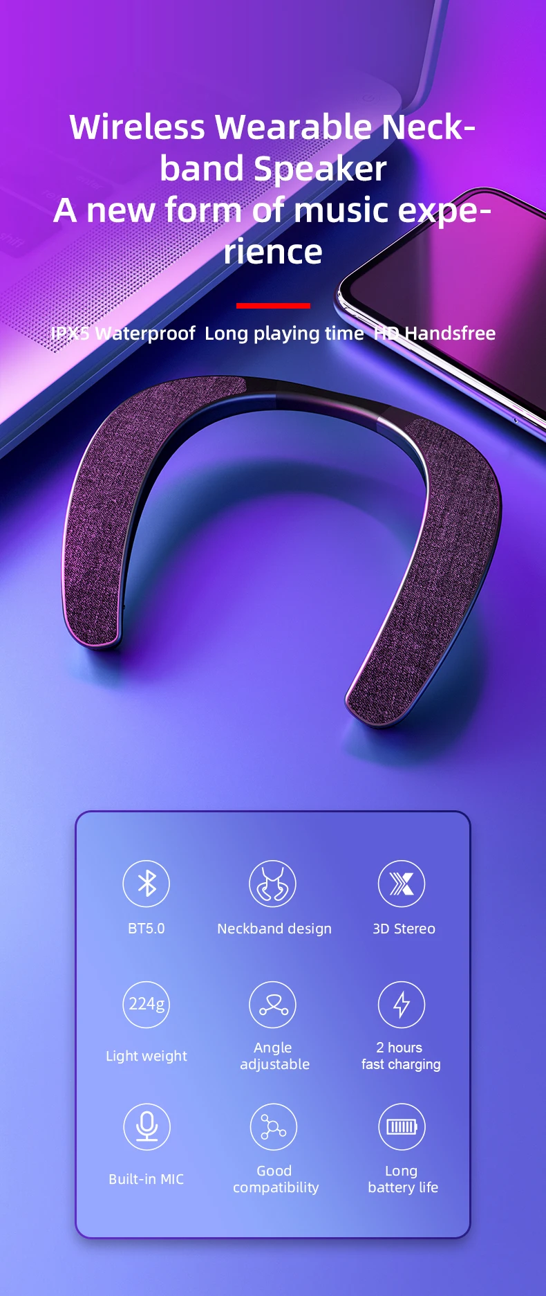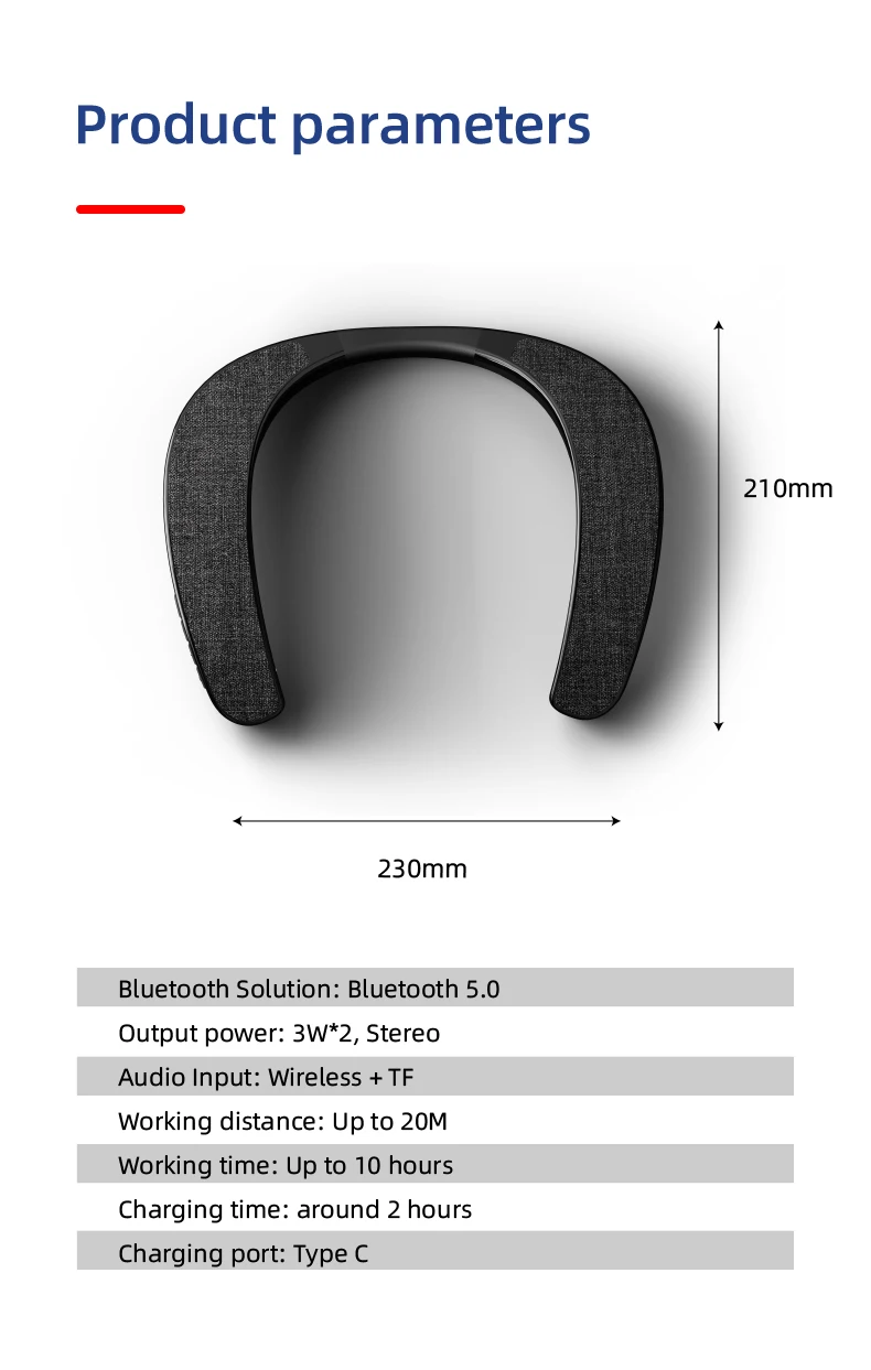 EBS-905 3W*2 Wearable Neckband Speaker Bluetooth 5.0 Hands-Free Ear-Free for TV Game Play Home Outdoor Use TF Card